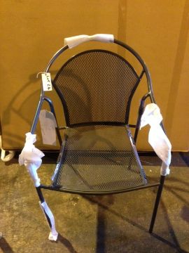 Montreal Chairs Pack of 3 - Arch back, stackable, metal finish mesh chairs. Dark grey in colour. Minor scratches and scuffs from storage. Dimensions: 67 x 55 x 81. NOT BOXED (Library Image - cushions not included)