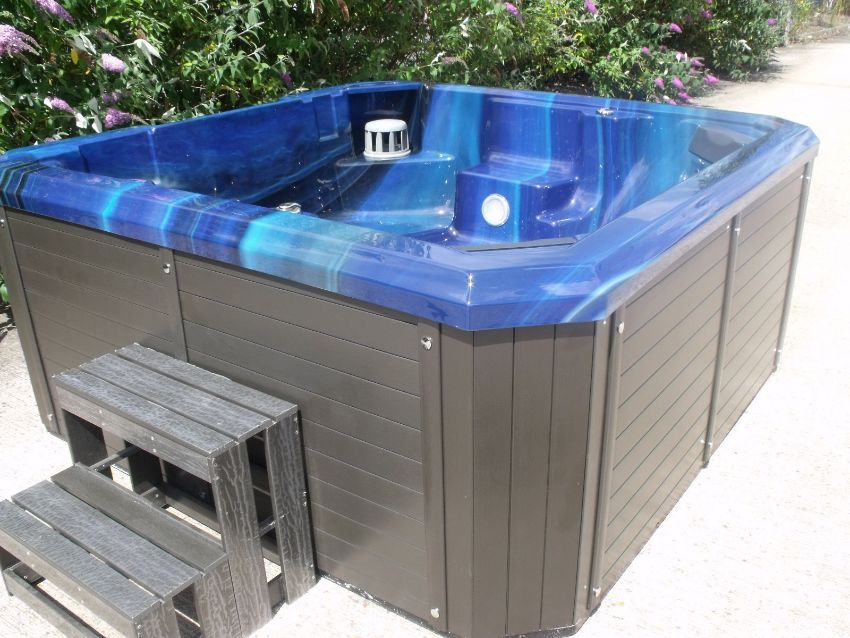 Deep Blue Spa cover with spa lifter for easy removal and storage