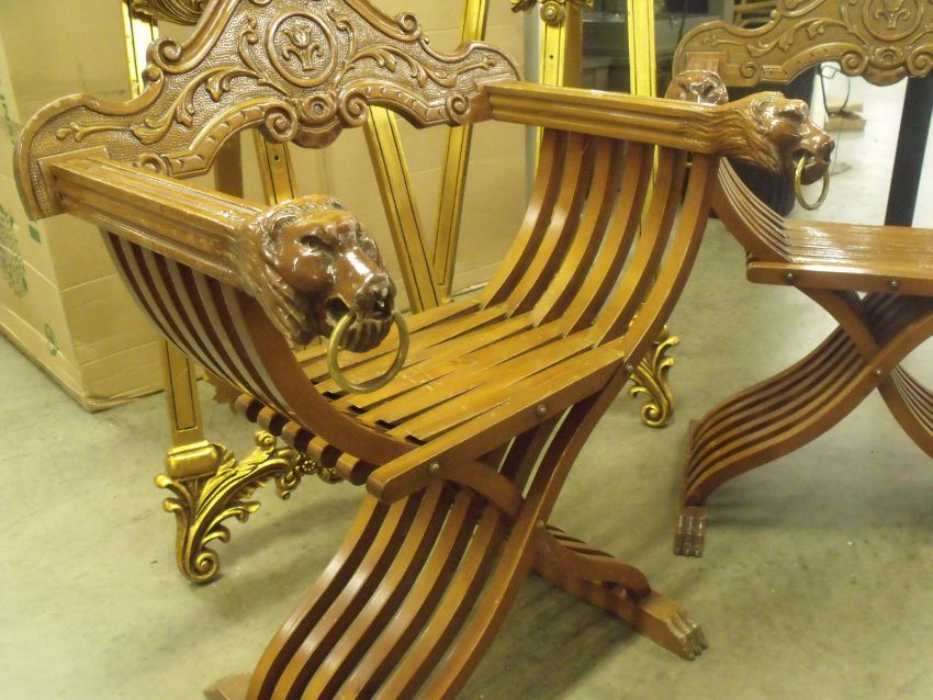 Mahogany Campaign Chair with the arms terminating in lions head masks with matching feet, removed from london restaurant