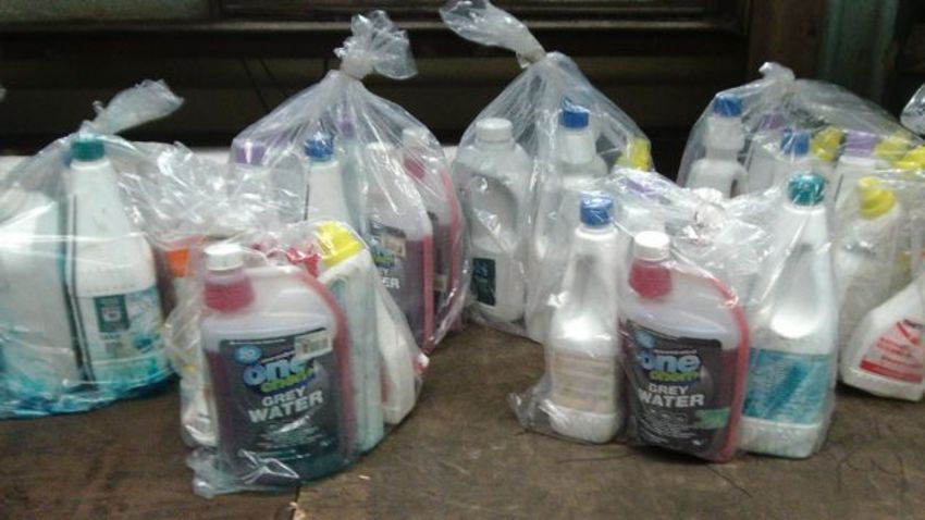 large assortment of warehouse worn cleaning solutions for caravans and camper vans - products bew , labels damaged - all useable