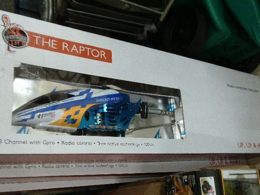 1. x Raptor 120cm large RC helicopter - boxed in original packaging , unknown return remote and battery pack in box - rrp £149.99.