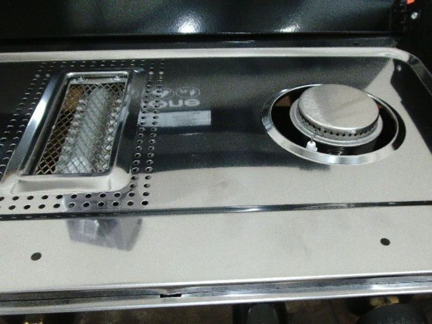 Deluxe double burner with grill & lid - showroom model- I have checked over - igniter works - ive not put gas to it , looks completely unused , packaging worn - grill accessories look to be complete