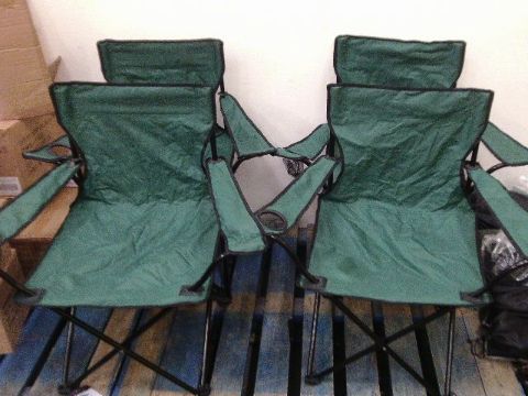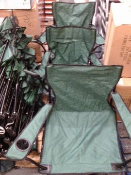 Appx 30 foldaway chairs - various new and used - minor faults eg - fraying stitching , common fault is on arms and back where a screw comes out , see pictures - does not affect chair in any way - i have sat on and tested all of them - all useable and sellable