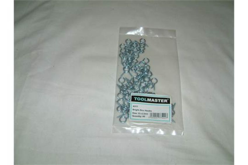 100 packs of bright zinc hooks and eyes. Hook size 23mm x 2.2mm, Eye size 23mm x 2.2mm