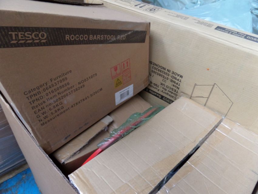 1 x pallet to contain Various Customer returned stock, to include Rocco bar stool, tub chair, seattle 2 drawer filer and much more. Very high rrp. Unchecked and Untested raw customer returns (r3)