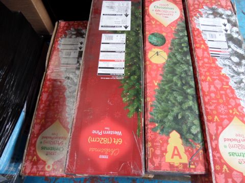 1 Pallet to contain 7 x Tesco Chrismas trees in various styles and sizes. New. High Retail price. Some may have slight box damage