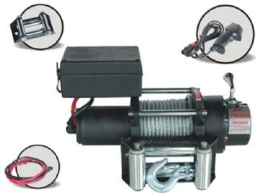12V 6000LBS ELECTRIC WINCH (NOT FOR LIFTING) Electric Trailer Winch Rated Pull - 6000LBS / 2722KGS (1st Layer) Line Speed - 2.2 Metres Per Minute Gear Ratio - 216:1 Motor - DC12V, 1.9HP Output Battery Leads Length - 1830MM Control Leads Length - Overall Dimensions - 453MM(L) x 160MM(W) x 205MM(H) Mounting Plate Dimensions - MM x MM Wire Rope - 7MM x 24 Metres (78 Foot) These winches can be used in a variety of different applications. The winch comes with remote control, roller fairlead and handsaver bar to help guide the wire rope back onto the drum. This winch has a freespool clutch which allows for the wire rope to be pulled out without using electric power.