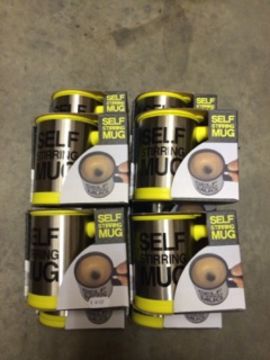 10PCS Self Stirring Mug - BRAND NEW Take the strain out of stirring drinks with the Self-Stirring Mug. No need to grab a teaspoon and stir, simply press the button and all the hard work is done for you. It's the ultimate idle drinking mug! Features: Just press the button for instant stirring action, Perfect for the lazy tea or coffee lover in your life, Not dishwasher safe, Used to automatically stir coffee, tea, hot chocolate, soups No water leaking into battery base when filled with water. Inner material of healthy PP, high temperature resistance, Outer material of stainless steel, durable and shining, One plastic ring around the lid for tight fitting, One button for power-on. Specifications: Material: PP, stainless steel Color: Silver, Yellow + Black Text Capacity: 350ml