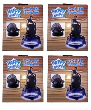 4PCS Camping Lantern Fan - BRAND NEW - Colour: Black This Fan has an 18 Bright White LED Light which you can use as a torch for low light conditions when needed. Convenient 2 in 1 device with built in Hook and Handle which can be hung up or placed on the floor providing sufficient light and airflow when needed. Functional 2 in 1 Device - 18 Powerful White LED bulbs - Up to 50 hours (low Speed) or 30 hours (high Speed) of lighting per set of batteries - Battery Operated (Requires 2 x D Size batteries) - Compact and portable - Made from ABS Plastic - LED lifespan 100,000 hours - Approximate Size 6.25 x 6.25 x 7.25 Inches