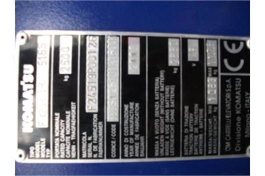 KOMATSU reach truck ELECTRIC model FB25RW1R-5155 SERIAL NO f24519p00126 FORK LENGH 1000 HOURS 03638
