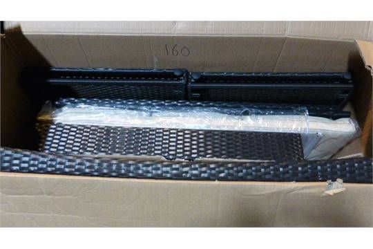 Rattan Low Level Bench and Table (fittings missing). Dimensions: Table H38, L80, W45 / Bench H76, L71, W113. Carton Size 115 x 60 x 18. 22kg