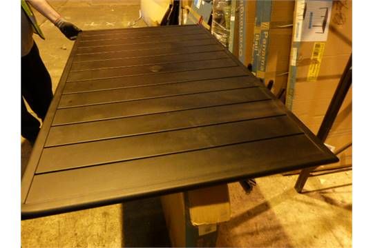 Sienna Outdoor Metal Table - Black - Table dims - L= 150 x W 90 x H 73 - 1 Box = 160 x 100 x 10 - 26kg - complete, damage to one corner shown in pictures - Some bolts may be missing.