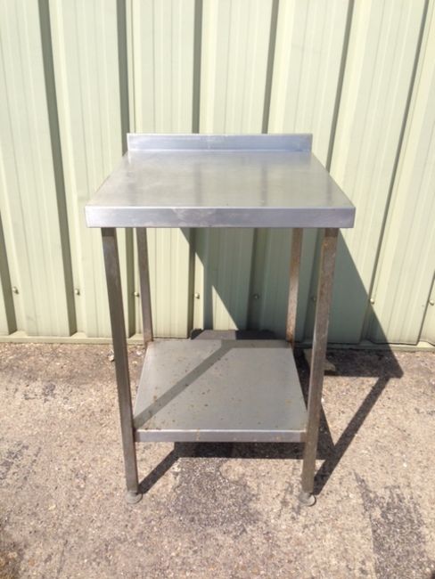 Stainless Steel Preparation Table. Used condition and requires a deep clean. Dimensions: (w)600mm x (d)650 x (h)900mm - feet are height adjustable.