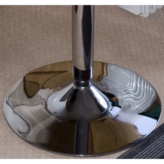 18 x Glass Topped Round Chrome Tables Only used once at an exhibition. Goes well with the chrome stools below. Height: 90 Diameter: 60 All sizes are in CM.