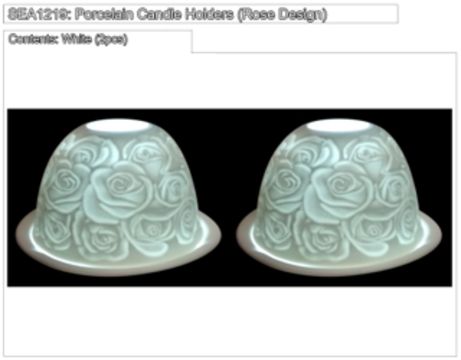 White Porcelain Candle Holders (Rose Design) (2pcs) - Brand New
