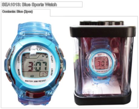 Durable LED sports watch in the colour blue.