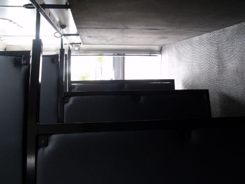 Day area with newly covered Pu walls in dark blue to complement the horse partitions