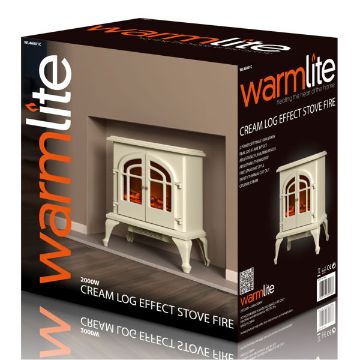 Brand new / Boxed complete with full warranty. Cream WL46001 Warmlite 2000w Log Effect Stove Fire. Free standing ornate 2000W stove fire in black with real log flame effect. Features thermostat control with 2 heat settings. With over heat protection for safety. 2000W. 2 Heat settings. Adjustable thermostat control. Real log flame effect with adjustable flame brightness. Real log flame effect with adjustable flame brightness. Free standing style. Overheat protection. Side panels: Metal. Plastic housing. Product size: 60 x 47 x 31 cm. Colour: Cream