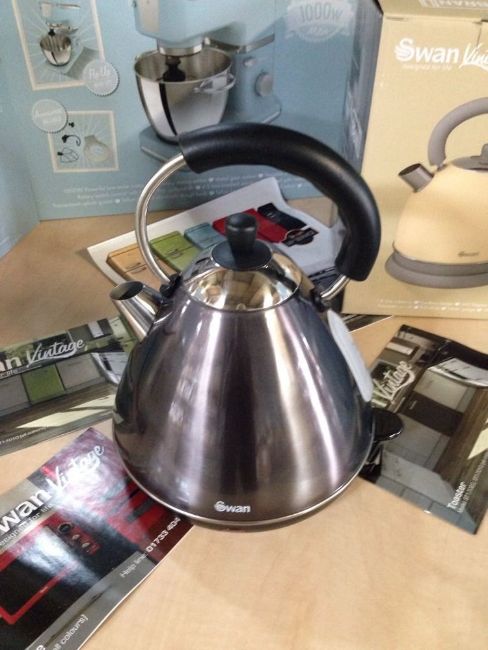 Brand New and Boxed Swan Kitchen Appliances Metallic Graphite/Black Pyramid 2L Kettle This traditional pyramid vintage kettle from swan would make a lovely addition to any kitchen. With a 360 degrees corless base traditional design with a large spout and water guage and power indicator it is easy to use and move around Safety features such as an automatic cut off and easy pour design. Dimensions L 22.5 W 24.5 x H 30cm Capacity 2L 2 Year Swan guarantee 3 Kw