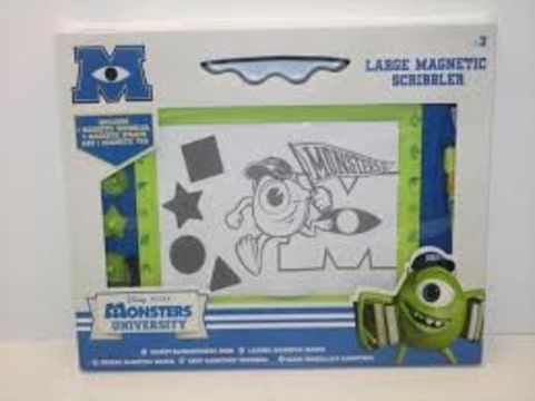 12 x Monsters university Large Magnetic Scribbler. Includes: 1 x Magnetic scribbler, 4 Magnetic stamps and 1 x Magnetic Pen. BRAND NEW AND BOXED. RRP £299.88