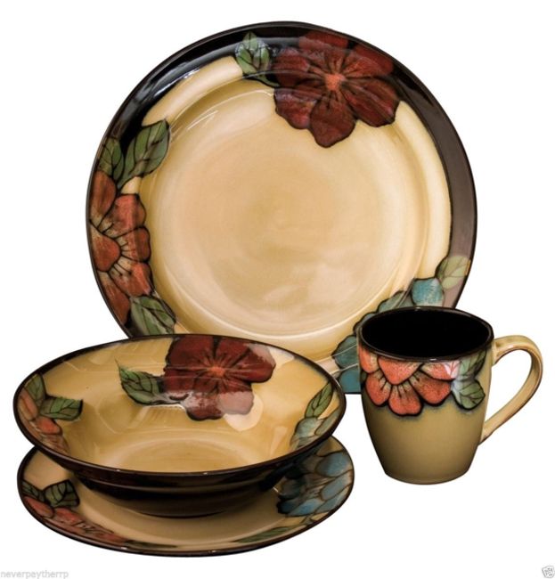 16 Piece Country Floral Dinner Plate Set, Moorcroft lookalike, Ceramic New and boxed perfect stock