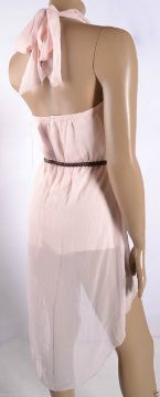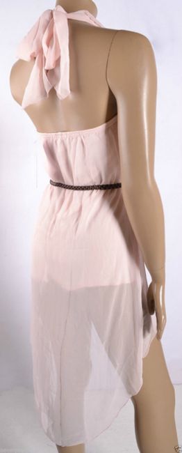 Foxy Grecian Style Pink Chiffon Cowl Neck Dress With Brown Belt, Size 12 BNWT