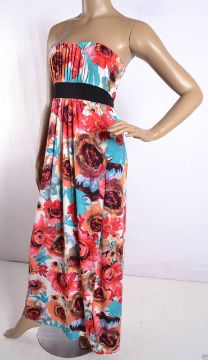 Miss Blush Bandeau Maxi Dress Floral Size 12 Party Dress with Elasticated Belt New BNWT