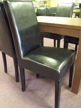 4 x black faux leather dining chairs with dark walnut legs, one piece chair no assembly required