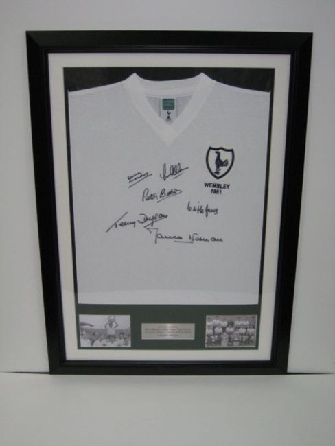 Signed 1961 Spurs Shirt with 6 Autographs. Framed and supplied with certificate of authenticity. Size in inches: 32" x 28"