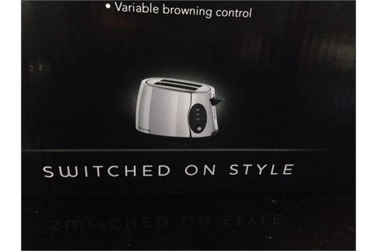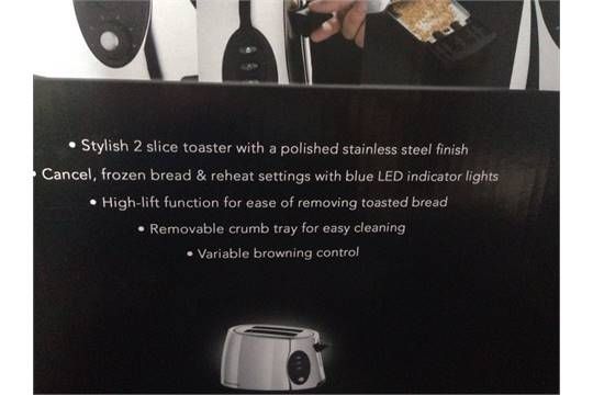 Russell Hobbs Stylish Polished Chrome Two Slice Toaster Brand New. Cancel, frozen bread and reheat settings with blue LED indicator lights High lift function for ease of removing toasted bread. Removable crumb tray for easy cleaning. Variable browning control.