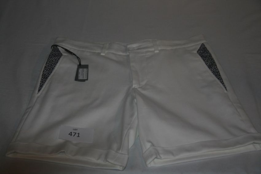RAKE - newman-chino shorts tyre print navy colour white size 30 retail £215