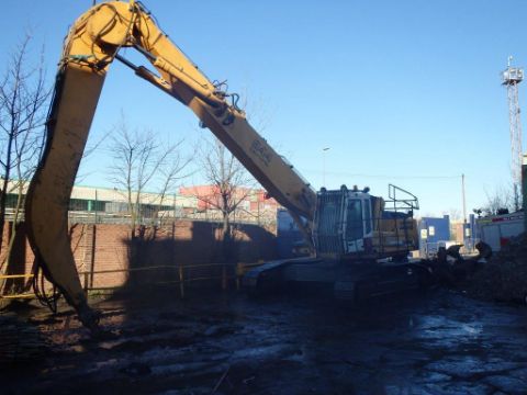 Liebherr 944 Tracked Rehandler 2002. Good condition, hydraulic high rise cab, very good undercarriage, approx 47 tonnes, long reach rehandling boom and no grab.