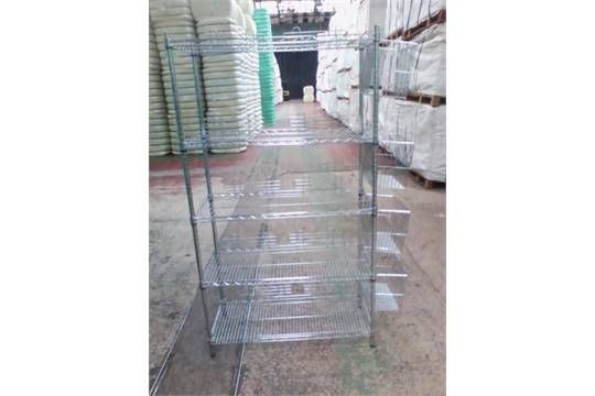 Catering Grade Chrome Finish Wire Mesh Shelving Unit - 1800mm H X 450mm D x 1000mm W