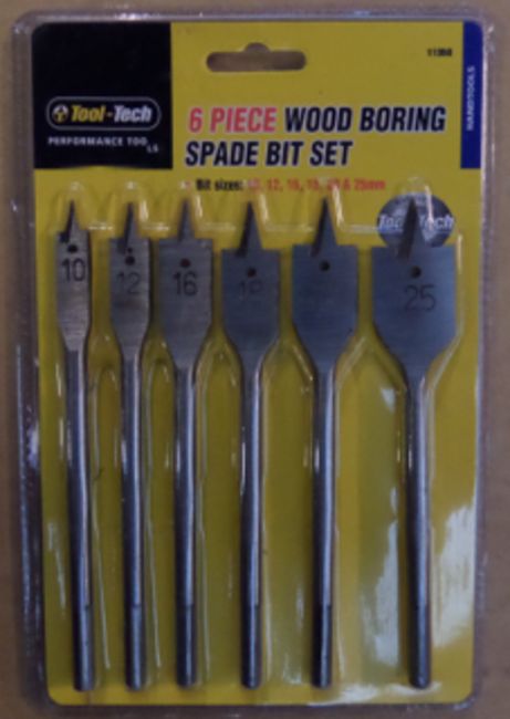 17 x Tool tech 6 piece wood boring spade bit set. Bit sizes: 10, 12, 16, 18, 20, 25MM. Brand new and packaged. High retail value