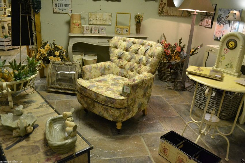 NEW Beatrice Button Back Armchair, Cream Floral Pattern, Front Castors RRP £350 New & boxed perfect stock. The Beatrice armchair is in a soft floral design in a button back style with studded detail and front castors. Soft pastel shades, Studded detail, Button back. Dimensions: Height: 34" - 86cm Width: 32" - 81cm, Depth: 32" - 81cm. COLLECT OR DELIVER.