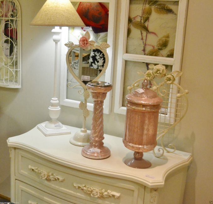 Le Rose Shabby Chic Ornate Heart Shape Vanity Mirror and Jewellery Stand, H52cm BNWT Le Rose Ornate Mirror and Jewellery Stand Ornate table top mirror decorated with a climbing rose. You can hang your jewellery on here too, very convenient! Material: Metal Dimensions: Height: 52cm, Width: 21.5cm, Depth 13cm COLLECTION AVAILABLE OR DELIVERY £3