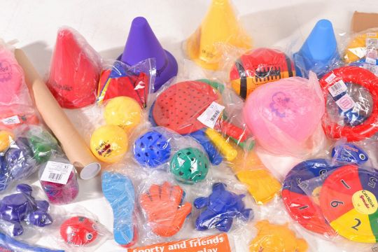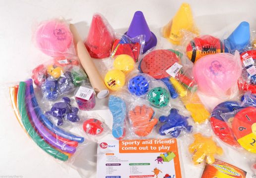 Outdoor Activity Play Pack With Carry Bag - RRP £287.94 New and boxed perfect stock A complete equipment package brought together to encourage pre-school and nursery children to develop basic movement skills. These products have been designed to be used within education settings and to support educational development. They offer fun and enjoyable activities to encourage the full integration of young disabled people. These kits sell at £287.94 on the GLS educational website, see this link for confirmation: http://www.glsed.co.uk/product/Sports-Movement-Kit-117539 Kit Includes: 2 Spordas Catchdisk ll 6 Spordas Beanbag Frogs™ 4 Spordas Beanbag Turtles™ 2 Spordas Edubugs Beanbags 2 Koosh® Balls 2 Balzac® balloon balls 3 juggling scarves 4 Spordas Direct Cue™ Hands 4 Spordas Direct Cue™ Feet 1 Spordas Sof Stuf™ Junior Rugby Ball 2 Airflow Balls 2 Spordas (102mm) Airballs 2 Trial (180mm) Airballs 1 Soft Touch Ball 4 Spordas Flexi Kones™ 4 Spordas Direct Cue™ Lines 4 Spordas Direct Cue™ Corners 6 Spordas Sequencing® Spots 2 Davies First Skills Bats 2 Davies Institutional bats 3 activity quoits 3 Spordas Expand O Hoops™ 1 equipment bag COLLECTION AVAILABLE OR DELIVERY £8