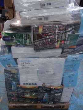 1 x Large Pallet (RN6) approx 5 foot tall to contain a large quantity of various customer returned stock such as:illumini lamps, disco balls, r/c range rover, quartz heaters, kettles, lava lamp, extension towers, table lamps, touch lamps, hand held steam cleaner and much more. Approx RRP Value £1,500! Unchecked/Untested customer returned stock