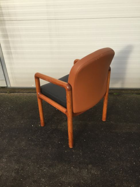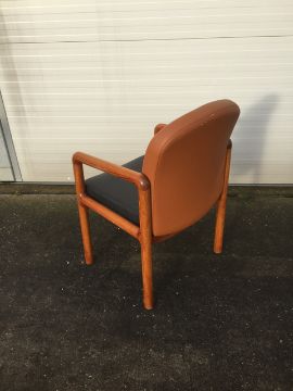 5x Used Visitor / Reception Chairs. Very good quality furniture with contrasting cushions to base and backrest. 3 chairs have the tan back and black base, with the other 2 chairs having black backrest and tan seat base. All require cleaning before use.