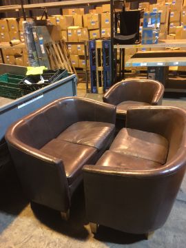 Brown Faux Leather Tub Sofa's and Chair