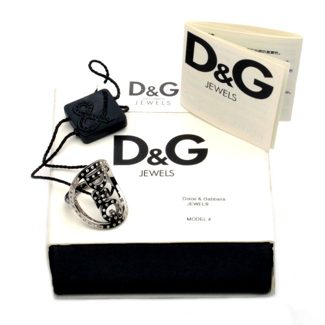 Beautiful silver D&G ring (“Stars” collection). - RRP £ 109 - Brand New & Boxed Model Number: DJ0518_x00D_ Product Name: D&G Stars Ring Size 14 (By D&G Jewels)._x00D_ Product Summary_x00D_ Ladies D&G Stars ring with logo and rhinestone (size 14)._x00D_ Product Description_x00D_ Beautiful silver D&G ring (“Stars” collection). Logo made from shiny rhinestones. Made from polished stainless steel (nickel free). Add a splash of glamour and glitz to your Saturday night with this eye catching statement ring!_x00D_ Type: Ring. Gender: Ladies Size: N to N ½ (uk size) / 14 (european size) / 6.75 to 7 (us size) Measurement: 1.7 cm (0.68 inches) diameter / internal circumference of 5.4 cm (2.12 inches). Colour: Silver Material: Polished stainless steel. Original RRP: £109 Manufacturer : Dolce & Gabbana Collection: Stars (D&G Jewels). Packaging: Complete with white and black D&G gift box & booklet. Boxed Product Weight: 82 g (2.9 oz)