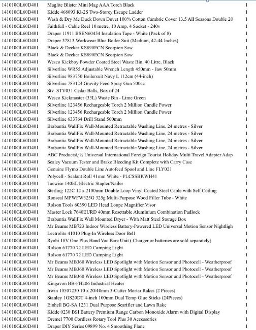 1 Pallet of Home improvement / Tools - Full breakdown shown in images Pallet Number 141010GL60D401 Total Units 133