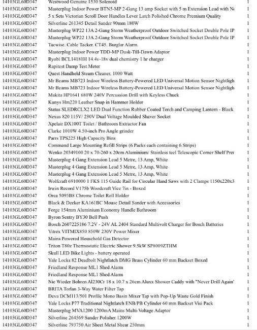 1 Pallet of Home improvement / Tools - Full breakdown shown in images Pallet Number 14103GL60D347 Total Units 277