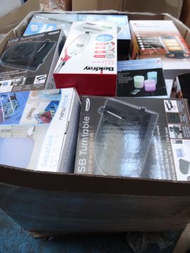 1 x Large Pallet (RT14) Approx. 4 Foot High to contain various unchecked/untested customer returned stock such as: beldray steam mop, easy steam mop, colour changing candles, USB turntable, cloth driers and much more! Approx RRP £1,500!!! Huge profit pottential
