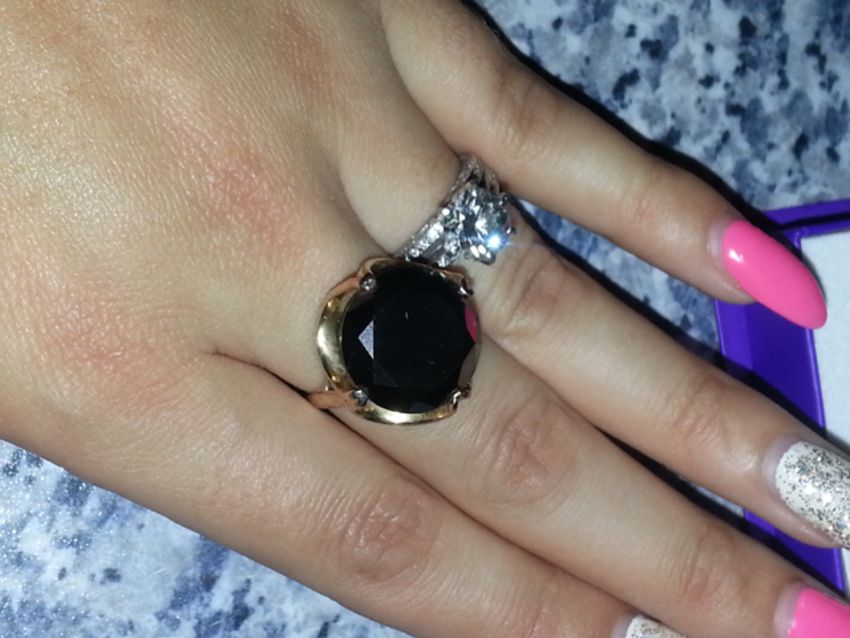 9ct gold ring with over 15 carat jet black natural diamond