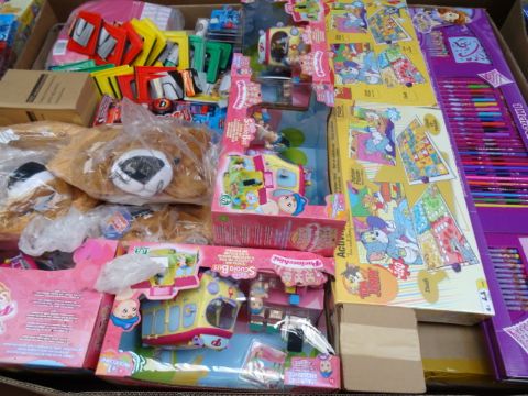 1 x Large Pallet (N5) approx 4 foot high to contain OVER 125 ITEMS OF BRAND NEW SUPERMARKET/HIGH STREET STORE OVER STOCKS. TO INCLUDE: HATS AND GLOVE, WATCHES, SCUOLA BUS, 1M CLOURING SETS, BAKERY BAGS AND MUCH MORE! VERY HIGH RETAIL VALUE!!