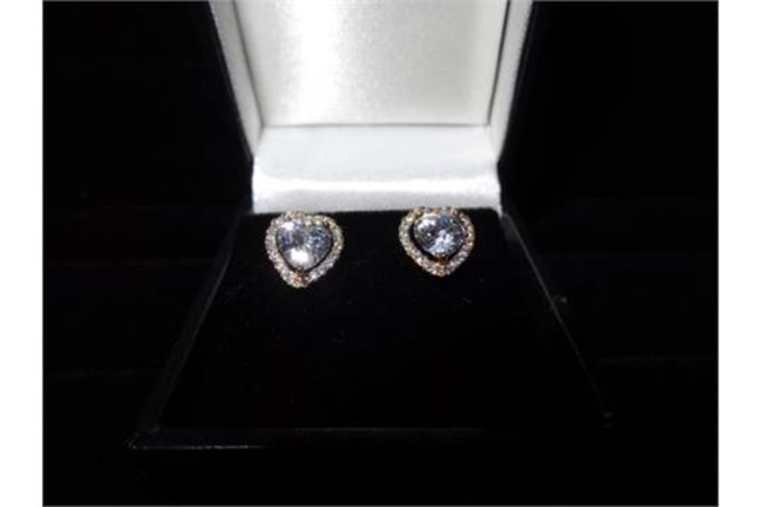1 x Pair of 9 Carat Yellow Gold Cubic Zirconia Heart stud earings. Original manufacturers RRP £149! Brand new and Boxed. Final Price INCLUDES FREE UK SIGNED DELIVERY!