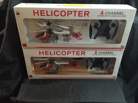2 x 4 Channel Indoor I/R Helicopters - Infrared, high-grade metallic co-axial helicopter. EAN - 5026686086591 _ Customer return_Boxed_Unchecked. NO VAT ON THIS ITEM__ DELIVERY ONLY- UK MAINLAND £9.00 - FOR COMBINED POSTAGE PRICES PLEASE CONTACT US