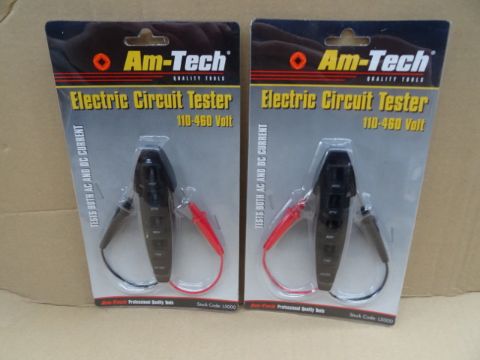 48 x Am-Tech Quality Tools. Electric Circuit Tester. 110-460 Volt. Tests both AC and DC Current. Multi Voltage 4 way current tester, with re-inforced casing and test leads. Features 4 Settings 110v, 220v, 277v and 460v. Positive and negative colour coded leads. BRAND NEW and Packaged! Fast moving stock. Very high retail value! UK Delivery £12 + VAT (combined postage available, please ask for a quote after you recieve your invoice.)