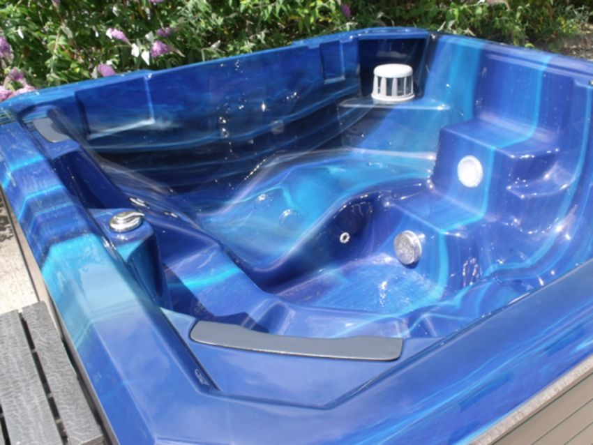 Deep Blue Spa cover with spa lifter for easy removal and storage